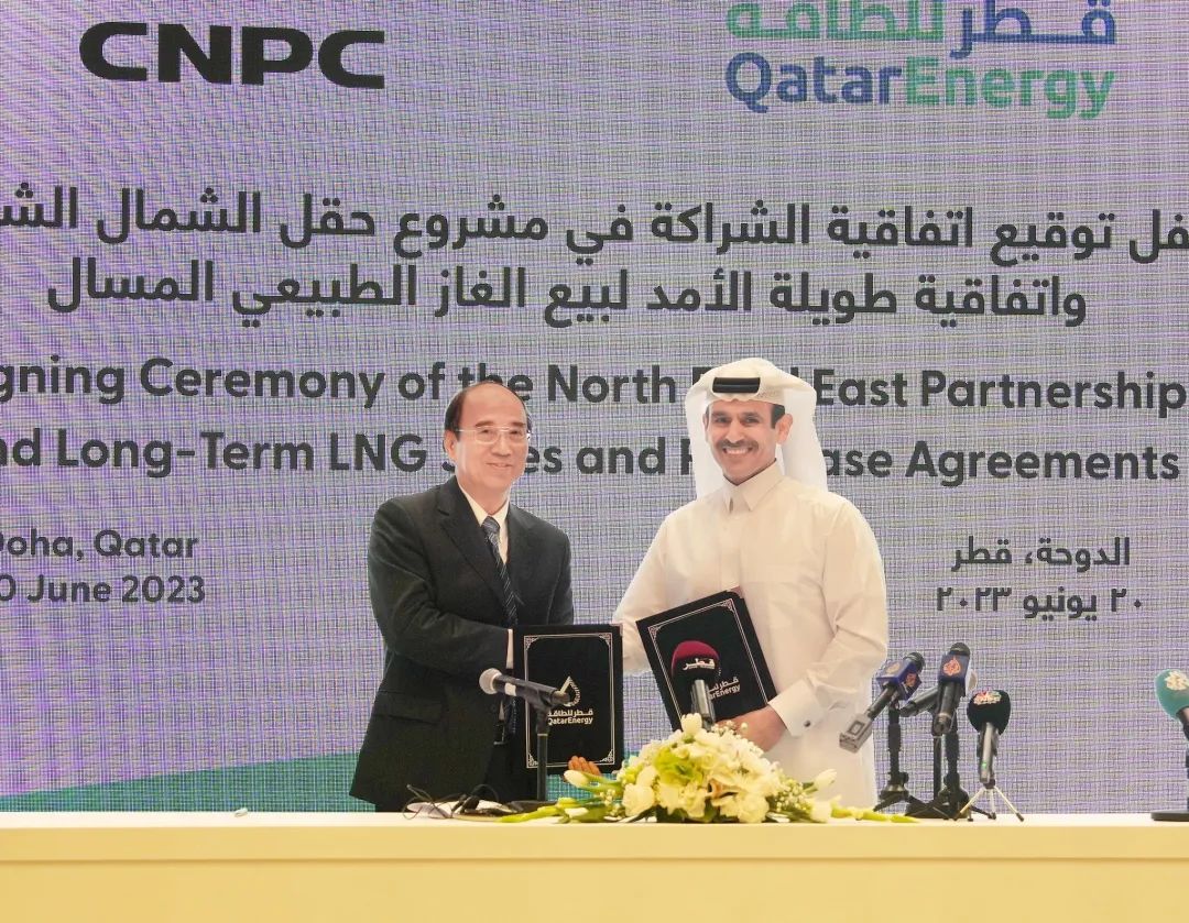 簽約儀式在卡塔爾能源公司總部舉行,中國石油集團董事長戴厚良,卡塔爾能源事務國務大臣、卡塔爾能源公司總裁兼首席執行官卡阿比分別代表雙方簽署合作文件并致辭。
