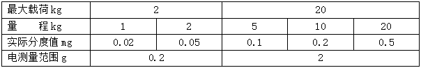 最大載荷3000kg,實際分度值d=0.1g,電測量范圍0~300g,氣體稱量范圍0~260kg,測量不確定度≤1g(k=2);