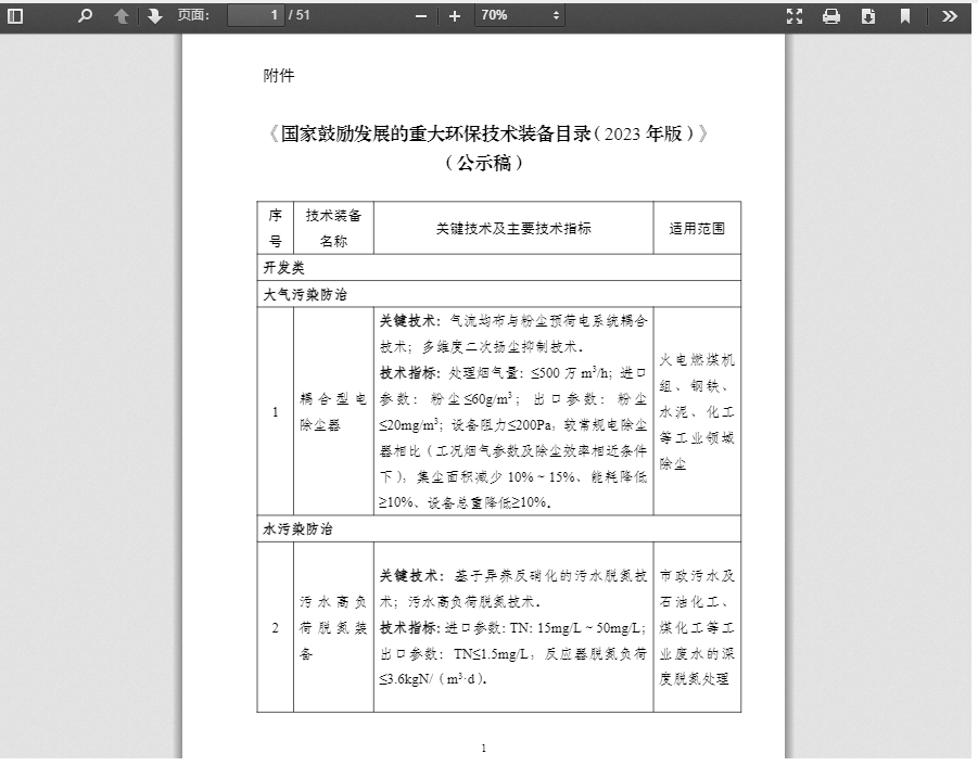 附件:《國家鼓勵(lì)發(fā)展的重大環(huán)保技術(shù)裝備目錄(2023年版)》(公示稿)