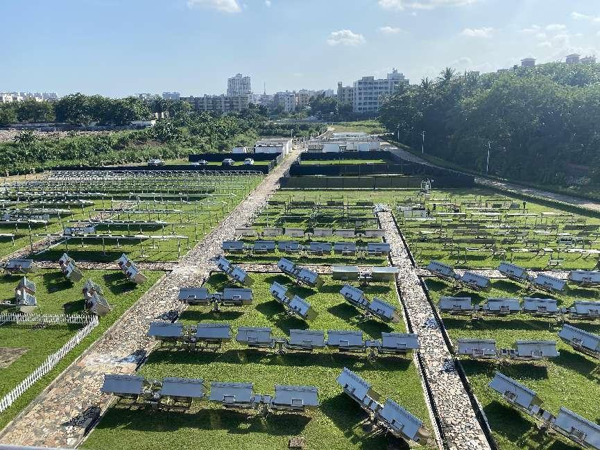 瓊海站占地48,000平方米、現有暴曬面積12,000平方米,根據需要可擴充至30,000平方米。建有戶外大氣暴露試驗區、汽車整車暴露試驗區、棚下暴露試驗區、樣品檢測室、太陽輻射記錄監控室、氣象監控室、大氣分析室、樣品處理室、樣品存放室、資料檔案室等。暴曬場安裝有可調角度暴露試驗架,擁有IP/DP箱、太陽跟蹤式IP/DP箱、標準黑箱、玻璃箱、太陽跟蹤聚光加速等自然環境試驗裝置。可執行的標準有GBISOASTMGMAATCCSAE以及各種企業標準。