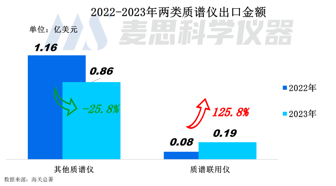 2023年我國質(zhì)譜儀器出口金額達1.05億美元(約合人民幣7.35億元),同比下降15.5%。