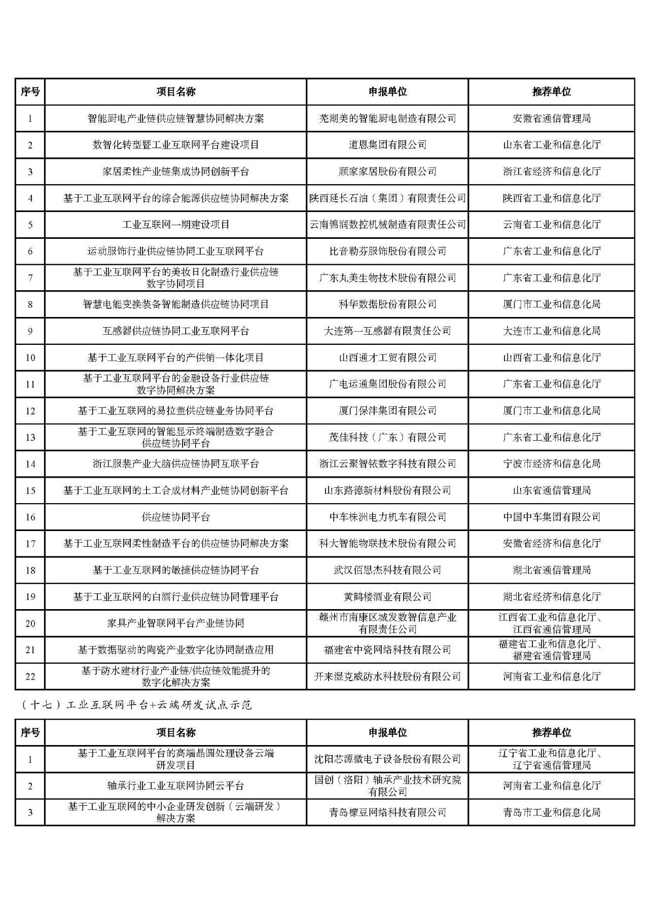 為深入貫徹《國(guó)務(wù)院關(guān)于深化“互聯(lián)網(wǎng)+先進(jìn)制造業(yè)”發(fā)展工業(yè)互聯(lián)網(wǎng)的指導(dǎo)意見》,根據(jù)《工業(yè)和信息化部辦公廳關(guān)于組織開展2023年工業(yè)互聯(lián)網(wǎng)試點(diǎn)示范項(xiàng)目申報(bào)工作的通知》(工信廳信管函﹝2023﹞319號(hào)),經(jīng)企業(yè)申報(bào)、地方推薦、專家評(píng)審,形成2023年工業(yè)互聯(lián)網(wǎng)試點(diǎn)示范名單。現(xiàn)予以公示,歡迎社會(huì)各界監(jiān)督。如有異議,請(qǐng)?jiān)诠酒趦?nèi)與我們聯(lián)系。
