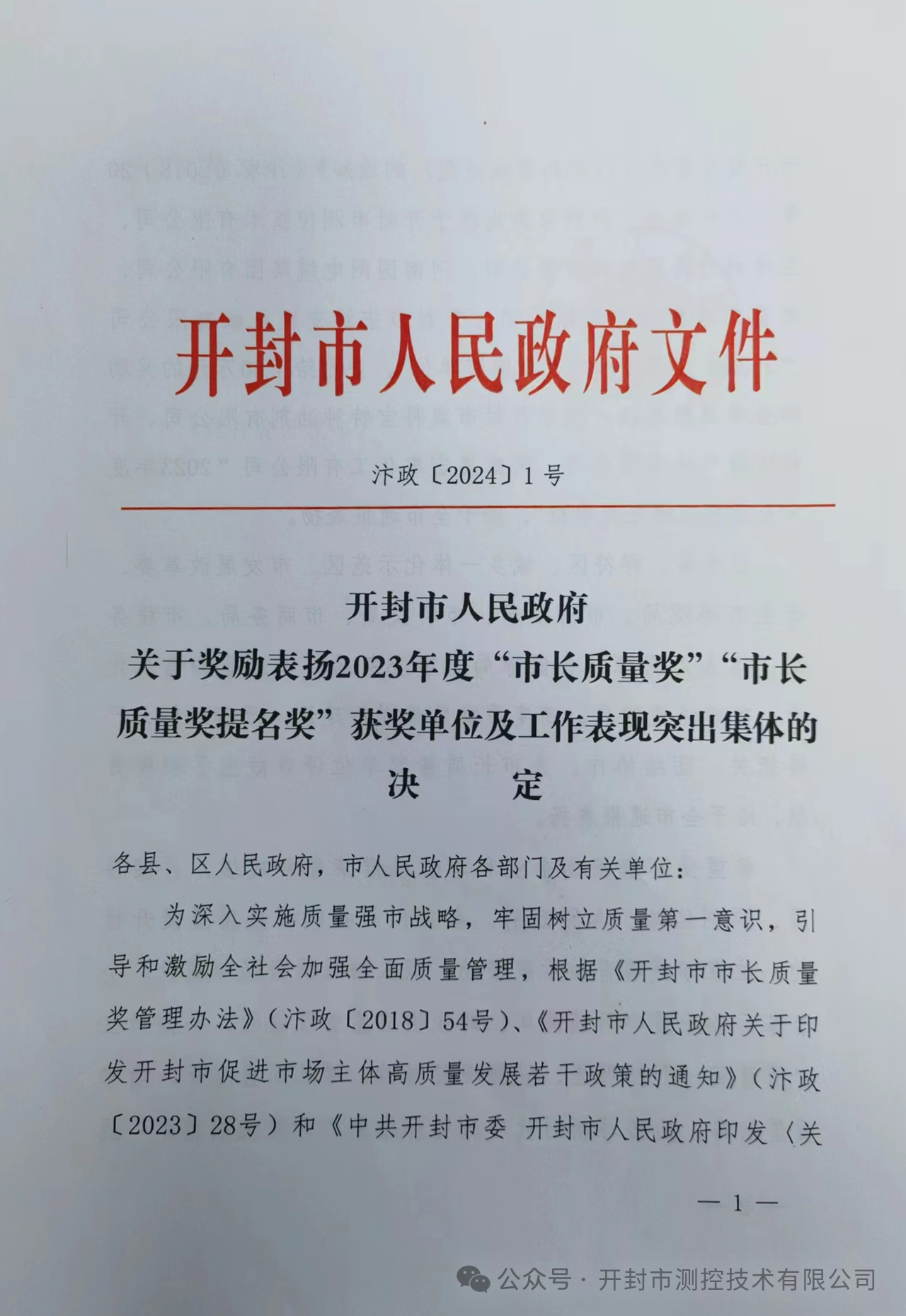 開封測控技術(shù)有限公司憑借其卓越質(zhì)量管理方面的出色表現(xiàn),榮獲了2023年度開封市“市長質(zhì)量獎(jiǎng)”,并在評比中榮登榜首。這一榮譽(yù)的獲得,無疑為開封測控技術(shù)有限公司再添殊榮,也進(jìn)一步彰顯了其在行業(yè)中的領(lǐng)先地位和卓越品質(zhì)。