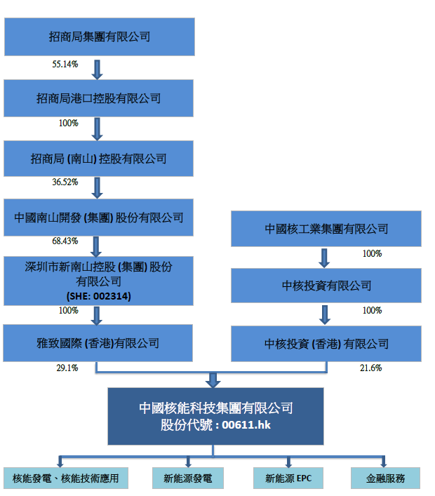 中國核能科技第二大股東為中核投資(香港)有限公司(簡稱中核投資香港)。中核投資香港為中核投資有限公司(簡稱中核投資)之全資子公司。中核投資是中核集團之全資子公司和新領域、新業務投資平臺。