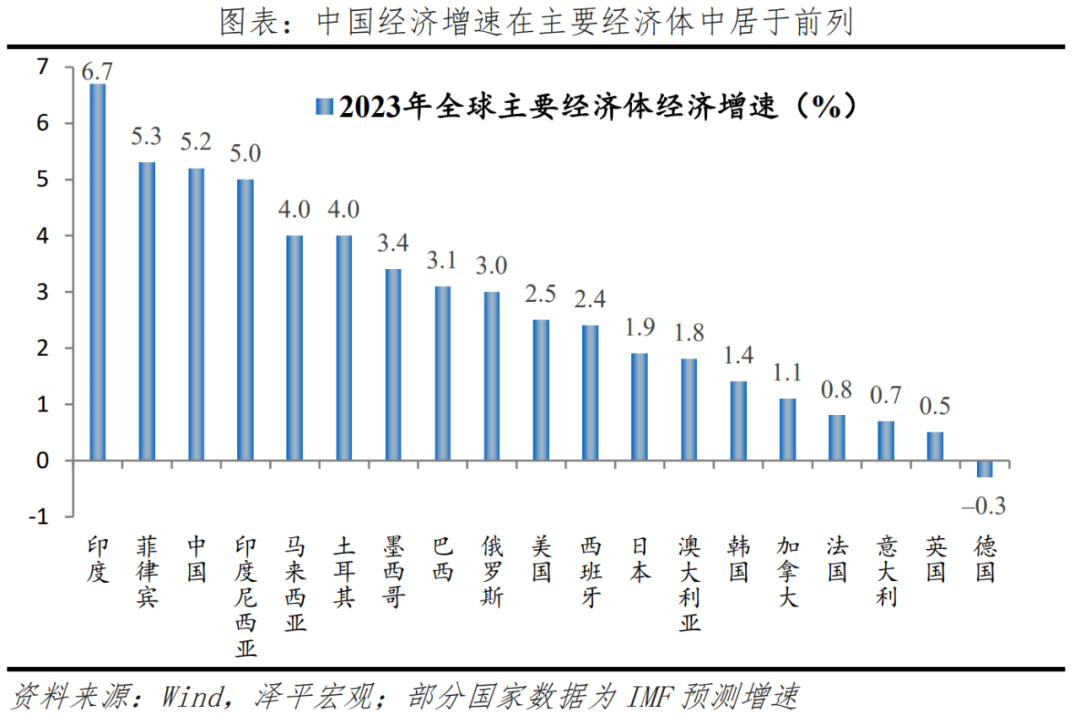 中國是全球經(jīng)濟(jì)增長的最大貢獻(xiàn)者,約為32%,遠(yuǎn)高于印度的15%和美國的11%。按照可比價(jià)計(jì)算,2023年經(jīng)濟(jì)增量超過6萬億元,相當(dāng)于一個(gè)中等經(jīng)濟(jì)體一年的經(jīng)濟(jì)總量。根據(jù)IMF研究,我國經(jīng)濟(jì)增長的溢出效應(yīng)明顯,經(jīng)濟(jì)增長1%,將帶動(dòng)其他經(jīng)濟(jì)體產(chǎn)出水平提高0.3%。