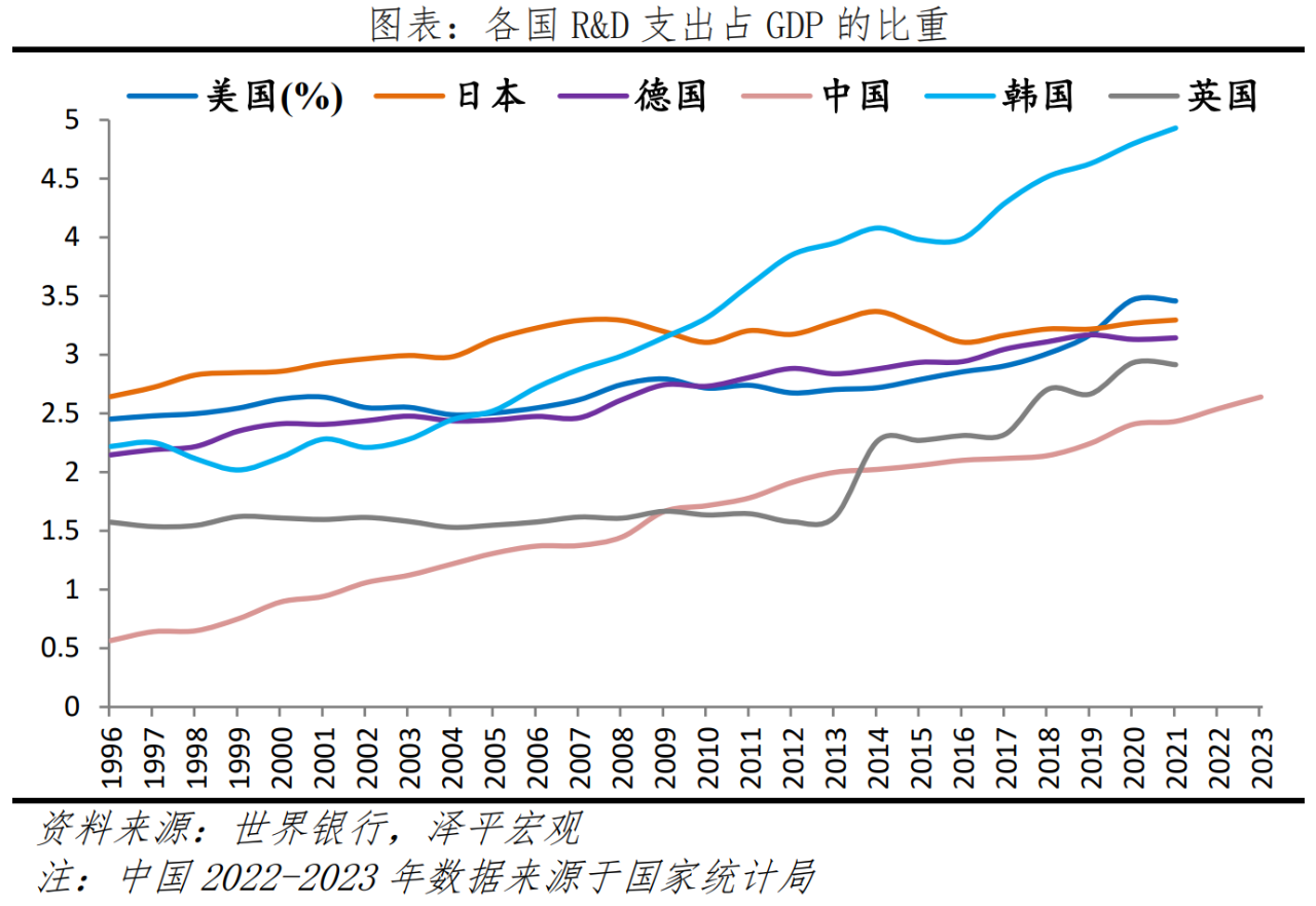 科技創(chuàng)新研發(fā)投入加大,深耕自主研發(fā),在部分高科技領(lǐng)域與發(fā)達(dá)國家的差距逐漸縮小。2023年我國研發(fā)支出3.3萬億元,占GDP的比重為2.64%,而2000年這一比重僅為1.0%。截至2018年底,國家科技成果轉(zhuǎn)化引導(dǎo)基金累計(jì)設(shè)立21支子基金,資金總規(guī)模達(dá)到313億元。我國成為世界上首個(gè)國內(nèi)有效發(fā)明專利數(shù)量突破400萬件的國家,高價(jià)值發(fā)明專利占比超過四成。
