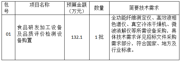 食品研發(fā)加工設(shè)備及品質(zhì)評價(jià)檢測設(shè)備購置公開招標(biāo)公告