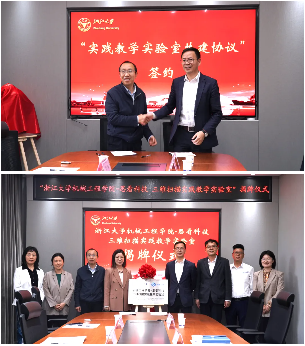 2024年4月22日,“浙江大學(xué)機(jī)械工程學(xué)院——思看科技三維掃描實(shí)踐教學(xué)實(shí)驗(yàn)室”揭牌暨簽約儀式在浙江大學(xué)機(jī)械工程學(xué)院實(shí)驗(yàn)教學(xué)中心成功舉行。
