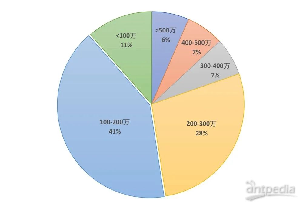 分子互作儀作為重要的生命科學儀器,其價格相對較高,基本設在百萬級。從本次統(tǒng)計來看,超過500萬中標金額的儀器僅一個型號,即思拓凡的Biacore 8K,200萬到500萬之間共計25臺,8種型號,包括思拓凡的Biacore 1S+、Biacore 1K;諾坦普的 Dianthus、Prometheus Panta、Monolith;賽多利斯的OCTET RH16、Octet R8、Octet R4,200萬以下共32臺,共計12種型號。其中100萬到200萬是眾多單位的預算區(qū)間,共計25次中標。