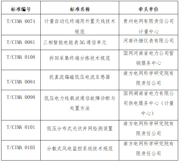 2024年4月 22-23日,中國儀器儀表行業(yè)協(xié)會(以下簡稱“協(xié)會”) 以視頻會議形式組織召開了《計量自動化終端用外置天線技術規(guī)范》等7項團體標準(項目信息詳見附表)送審稿審查會。來自國網(wǎng)山東省電力公司電力科學研究院、廣東電網(wǎng)有限責任公司計量中心、河南省計量科學研究院、國網(wǎng)計量中心有限公司、國網(wǎng)湖北省電力有限公司電力科學研究院、國網(wǎng)河南省電力公司營銷服務中心(計量中心)、國網(wǎng)山東省電力公司、國網(wǎng)重慶市電力公司營銷服務中心、黑龍江省電工儀器儀表工程技術研究中心有限公司的九位專家組成審查組,國網(wǎng)山東省電力公司電力科學研究院的徐民教授級高工擔任組長。會議由協(xié)會副秘書長程紅主持。協(xié)會及電工儀表分會的團體標準工作人員、標準主要起草人參加了本次會議。