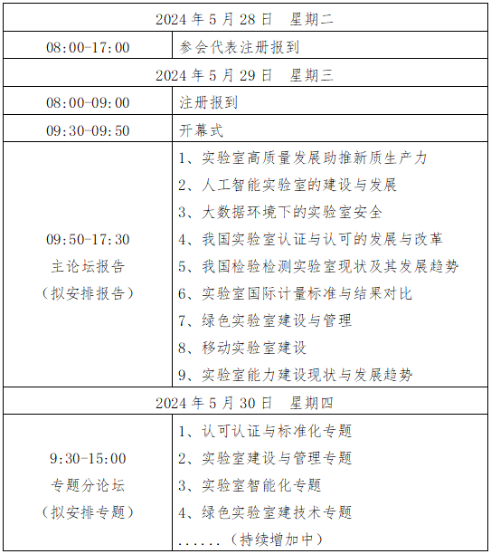 本屆大會(huì)將繼續(xù)以“智慧、安全、綠色、創(chuàng)新”為主題,聚焦我國(guó)實(shí)驗(yàn)室建設(shè)與管理、實(shí)驗(yàn)室安全、智慧實(shí)驗(yàn)室、實(shí)驗(yàn)室認(rèn)證認(rèn)可、實(shí)驗(yàn)室數(shù)據(jù)管理、危化品管理、標(biāo)準(zhǔn)物質(zhì)、實(shí)驗(yàn)動(dòng)物等話題,進(jìn)行深入研討和經(jīng)驗(yàn)交流。