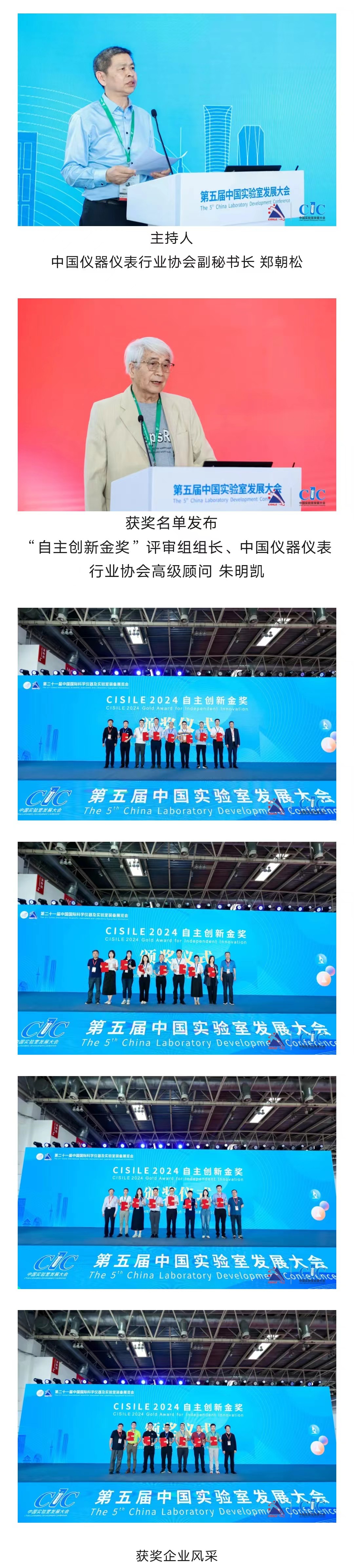 經(jīng)過數(shù)月的等待,在2024年5月29日,第二十一屆中國國際科學(xué)儀器及實驗室裝備展覽會“自主創(chuàng)新金獎”頒獎典禮在北京落下帷幕,共有27家單位攜26個產(chǎn)品獲此殊榮(包含聯(lián)合申報一項),并現(xiàn)場向獲獎單位頒發(fā)了證書和獎杯。