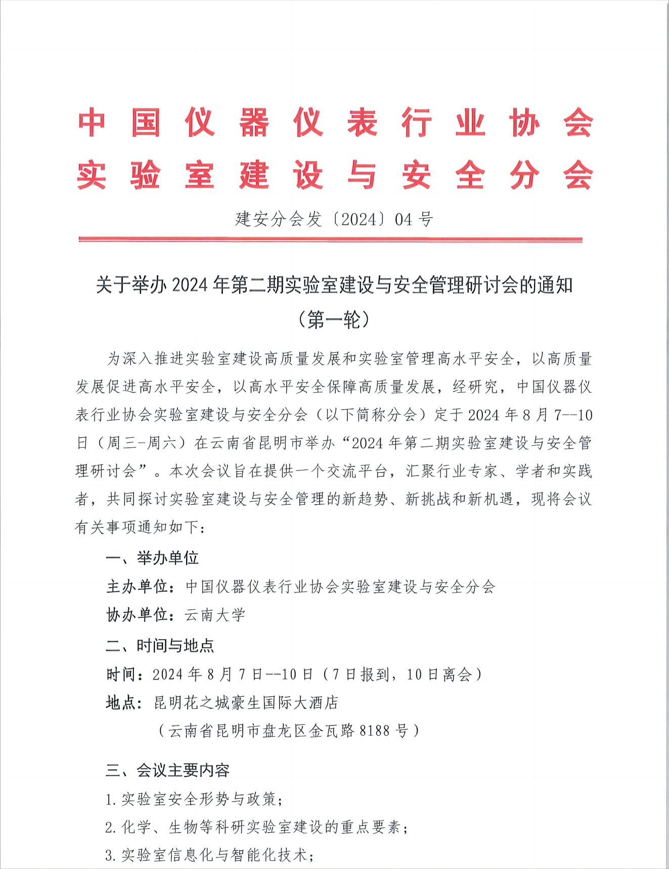 關于舉辦2024年第二期實驗室建設與安全管理研討會