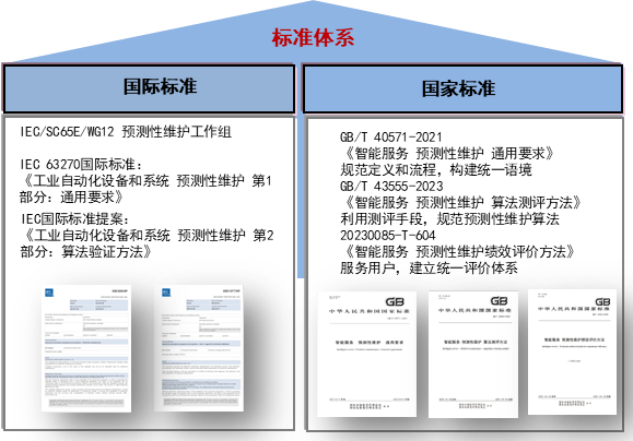 儀綜所作為國家技術標準創新基地(智能制造基礎)承擔單位、IEC/TC65(國際電工委員會/工業過程測量控制和自動化技術委員會)國內技術對口單位、IEC/SyC SM(國際電工委員會/智能制造系統委員會)國內技術對口單位等,牽頭成立IEC/SC65E/WG12(國際電工委員會/企業系統中的設備與集成分技術委員會/預測性維護工作組),提出了預測性維護標準體系并牽頭制定了預測性維護領域系列國際標準與國家標準,形成了科研/標準/測試/認證協同閉環體系。