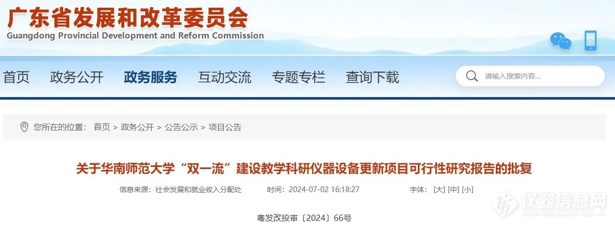 7月2日,廣東發(fā)展和改革委員會發(fā)布了《關(guān)于華南師范大學(xué)“雙一流”建設(shè)教學(xué)科研儀器設(shè)備更新項目可行性研究報告的批復(fù)》(以下簡稱“《批復(fù)》”)。