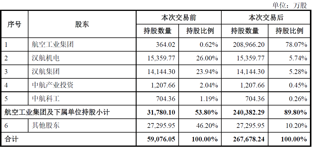 漢航機電直接持有公司26.00%股權(quán),為公司控股股東。航空工業(yè)集團合計控制公司53.80%股權(quán),為公司實際控制人。國務(wù)院國資委為公司最終控制人。