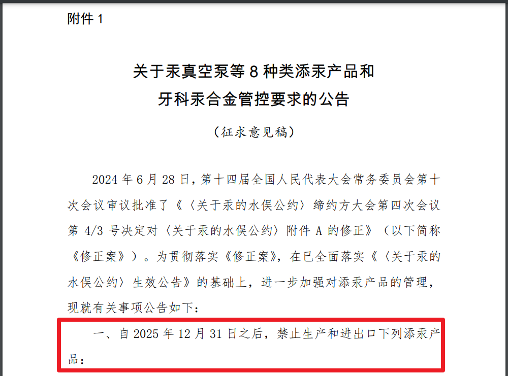 20251231日之后,禁止生產和進出口下列添汞產品: