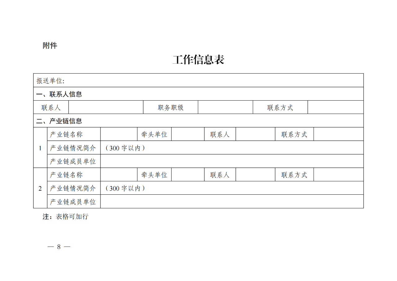 (十一)加強組織實施。各省級知識產權局會同相關部門,依托專利轉化運用專項行動推進機制,面向重點產業建立產業鏈企業聯系工作機制,因地制宜開展產業知識產權強鏈增效工作;鼓勵中央企業選取細分領域,協同產業鏈上下游企業以及相關高校、科研機構,共同開展產業知識產權強鏈增效工作。各省級知識產權局以及有關中央企業于815日前將工作信息表(見附件)報送國家知識產權局,以半年為周期報送工作進展情況,有關重大情況要及時報告相關主管部門。