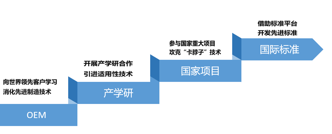 堅(jiān)持高強(qiáng)度研發(fā)投入支持創(chuàng)新,近三年研發(fā)投入營收占比均超8%,2023年超10%。公司總結(jié)出階梯式科技資源整合創(chuàng)新路徑,從早期向領(lǐng)先客戶學(xué)習(xí)基本的生產(chǎn)工藝與產(chǎn)品設(shè)計(jì)知識,到與高校院所進(jìn)行產(chǎn)學(xué)研合作學(xué)習(xí)新產(chǎn)品開發(fā),再到參與國家重大工程進(jìn)行研發(fā)學(xué)習(xí)來探索前沿技術(shù)。現(xiàn)階段是借助標(biāo)準(zhǔn)平臺開發(fā)先進(jìn)標(biāo)準(zhǔn),在標(biāo)準(zhǔn)制定中學(xué)。