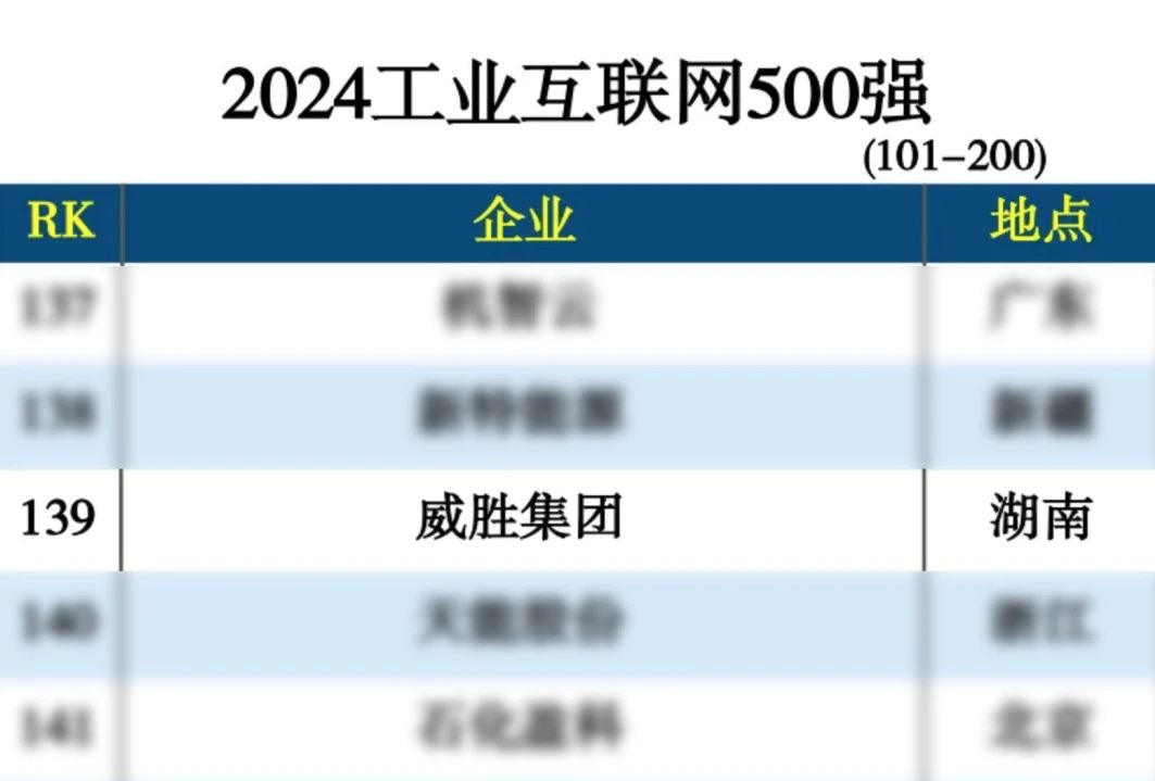 威勝集團上榜“2024工業互聯網500強”