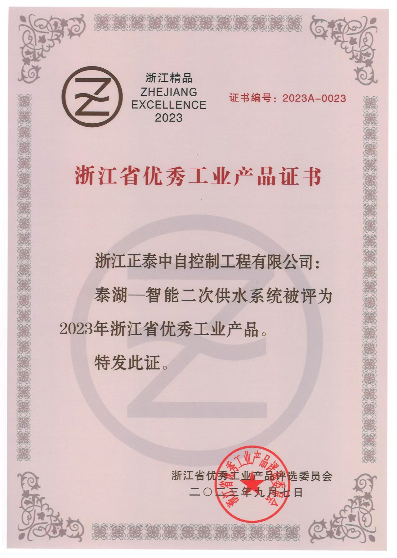 產品運用的專業設備管理軟件獲水利部昆侖獎。憑借卓越的產品性能和創新技術,泰湖-智能二次供水系統榮獲“2023年浙江省優秀工業產品殊榮,成為打造浙江省優秀工業產品的一張金名片。