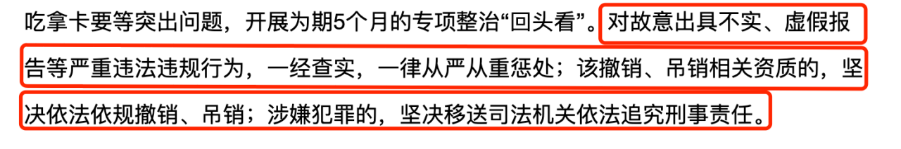 該行動方案要求,各地各部門在前期已開展整治工作的基礎上,結合職責分工,聚焦食品、特種設備、交通、建筑、環(huán)境五大領域的檢驗檢測弄虛作假、違規(guī)經營、吃拿卡要等突出問題,開展為期5個月的專項整治“回頭看”。
