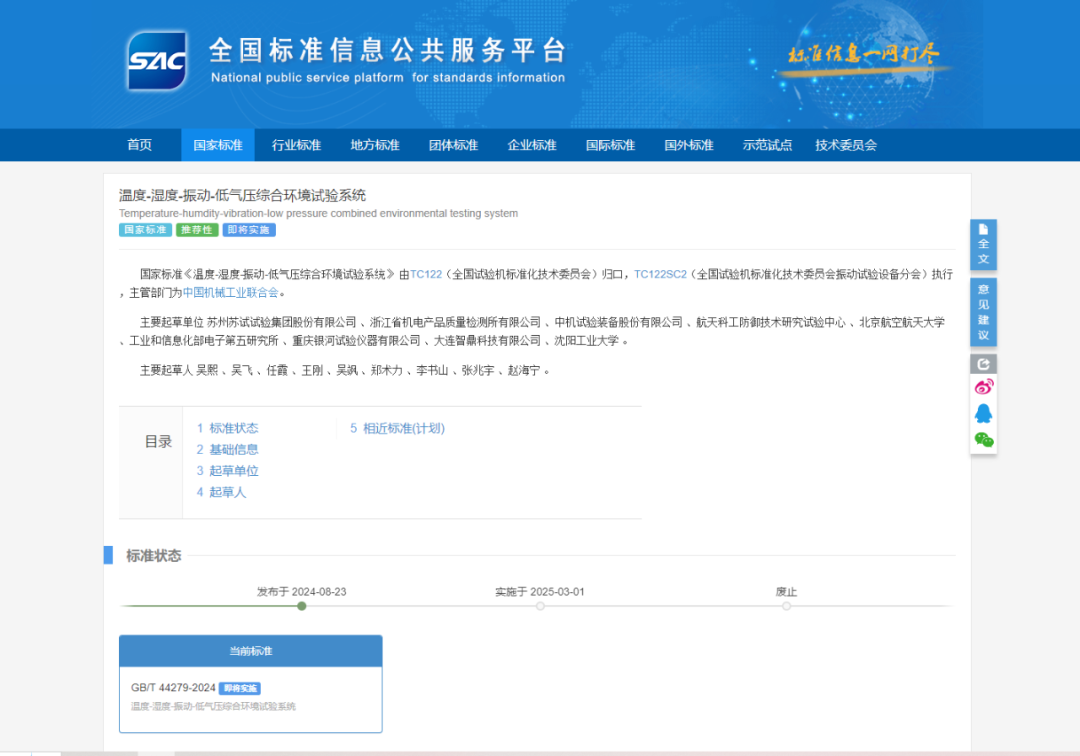 蘇試試驗(yàn)作為工業(yè)產(chǎn)品環(huán)境適應(yīng)性與質(zhì)量可靠性試驗(yàn)驗(yàn)證及分析服務(wù)解決方案提供商,是相關(guān)國(guó)家標(biāo)準(zhǔn)、行業(yè)標(biāo)準(zhǔn)的主要起草者之一。在我國(guó)力學(xué)、氣候、綜合等試驗(yàn)設(shè)備及試驗(yàn)方法領(lǐng)域,集團(tuán)已累計(jì)主持或參與制定國(guó)家標(biāo)準(zhǔn)53項(xiàng),行業(yè)標(biāo)準(zhǔn)15項(xiàng)。