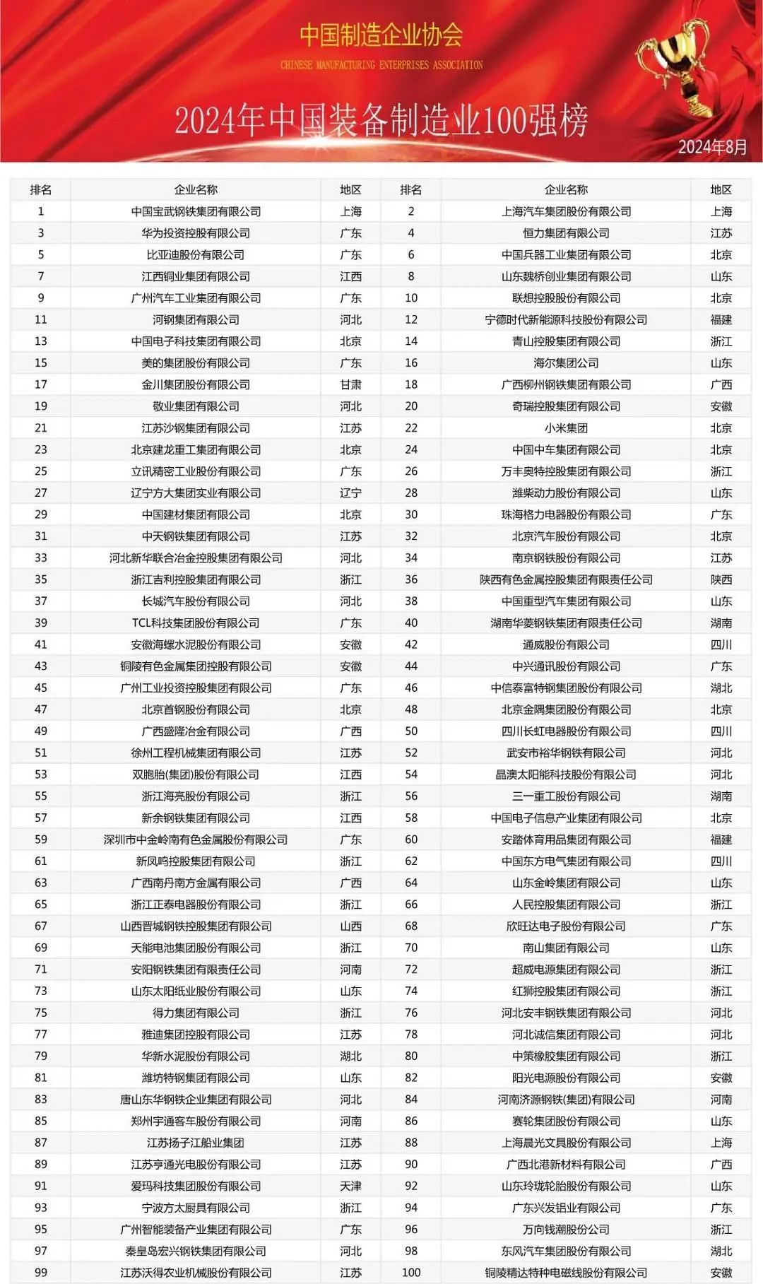 近日,中國制造企業(yè)協(xié)會對外發(fā)布《2024中國制造業(yè)綜合實力200強暨中國裝備制造業(yè)百強》榜單。