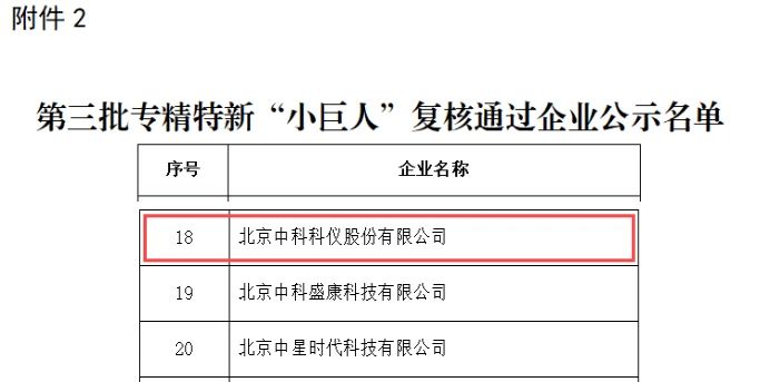 9月2日,北京市經(jīng)濟(jì)和信息化局公示了第三批國(guó)家級(jí)專精特新“小巨人”復(fù)核通過企業(yè)名單,北京中科科儀股份有限公司通過工業(yè)和信息化部及北京市經(jīng)濟(jì)和信息化局復(fù)核。