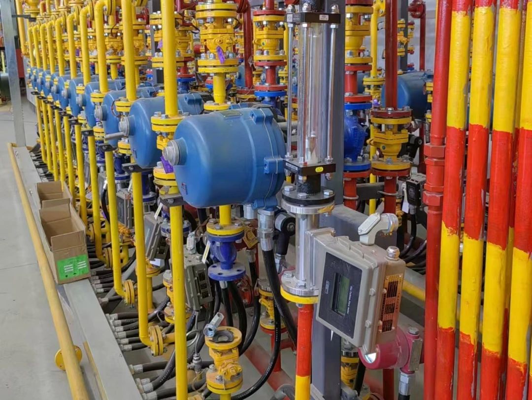 氮氣測量采用1.5%精度的LWQ系列氣體渦輪流量計控制流量,因現場垂直安裝,選無注油表體。氫氣測量采用管道式SFMT系列熱式氣體質量流量計。