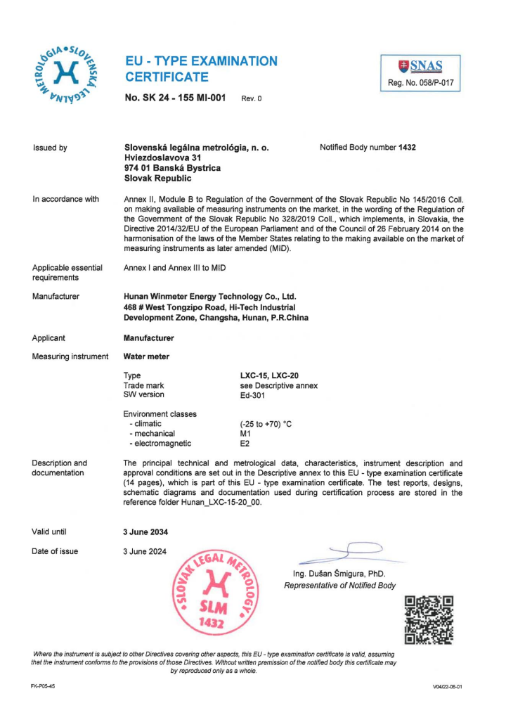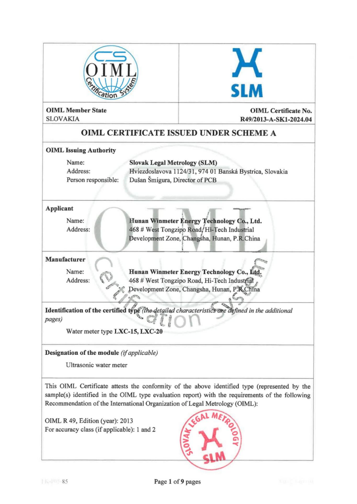 斯洛伐克法定計量(SLM)是全球公認(rèn)的水計量型式認(rèn)可機構(gòu)。SLM是永久提供高品質(zhì)和經(jīng)濟(jì)實惠的計量服務(wù),并頒發(fā)MID和OIML證書。這些證書被世界各地的公用事業(yè)公司廣泛要求,以確保供應(yīng)的產(chǎn)品具備各種工況下的長期準(zhǔn)確性。