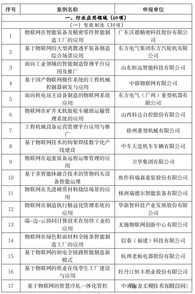 1031日消息,工信部官方發布2024年物聯網賦能行業發展典型案例公示。