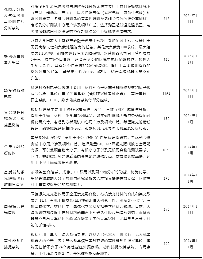 北京大學(xué)2024年11月儀器設(shè)備采購意向匯總表