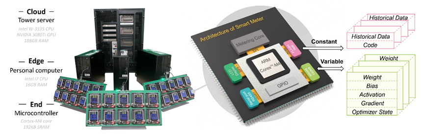 目前市場化的智能電表產品僅具備電能計量和雙向通訊的功能。如果智能電表能夠在本地對收集的海量數據進行智能分析處理,電力系統可以在無需額外投資的情況下提高能源管理效率、降低用戶電力消費、以及緩解云平臺計算壓力。然而,智能電表的內存、計算和通信硬件資源和數據資源有限,難以支撐復雜的神經網絡訓練任務。為此,該論文通過結合聯邦學習和分割學習,提出了一種創新的云--端架構,有效解決了智能電表在硬件資源和數據資源方面的雙重限制的問題。