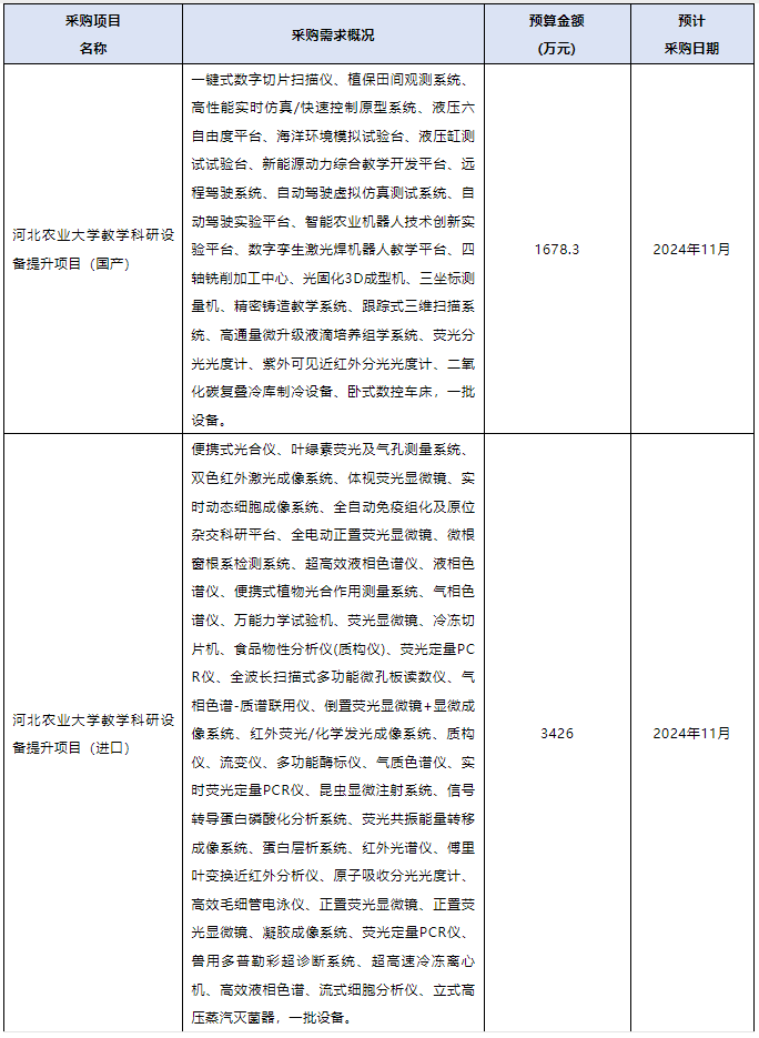 河北農(nóng)業(yè)大學(xué)11月儀器采購(gòu)意向匯總