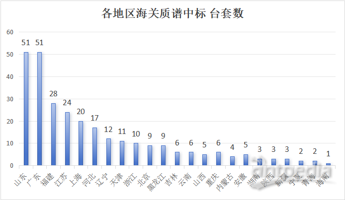 根據(jù)截至12月30日的公開中標(biāo)信息,不完全統(tǒng)計(jì)顯示,全國共有23個(gè)省、直轄市、自治區(qū)的72個(gè)海關(guān)相關(guān)單位參與了質(zhì)譜儀的采購,共采購了288臺套質(zhì)譜儀器,中標(biāo)總金額達(dá)到5.2億元人民幣。