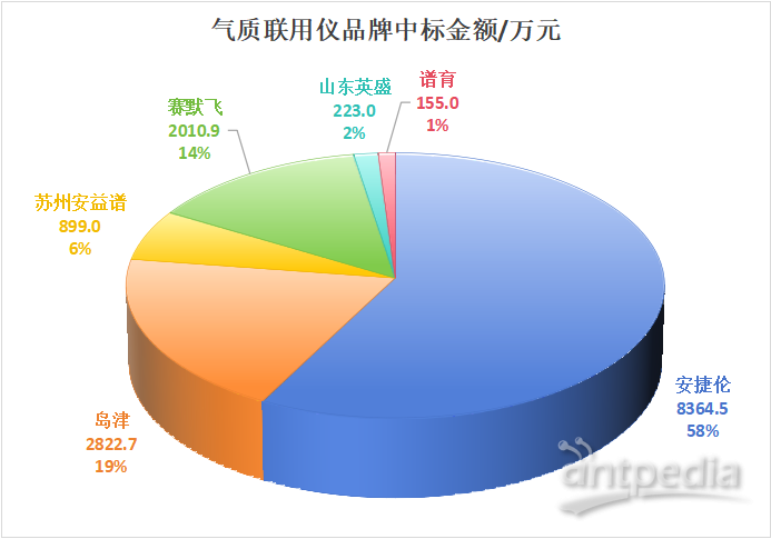 盡管氣質(zhì)聯(lián)用儀在中標(biāo)數(shù)量上略勝一籌,但從中標(biāo)總金額來看,液質(zhì)聯(lián)用儀以超過3億元的中標(biāo)金額占據(jù)了質(zhì)譜總中標(biāo)金額的59%,顯示出其在高端市場的強(qiáng)大競爭力。氣質(zhì)聯(lián)用儀的中標(biāo)金額為1.4億元,占總金額的28%,ICP MS的中標(biāo)金額為6217.1萬元,MALDI-TOF質(zhì)譜的中標(biāo)金額為805.0萬元。