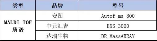 MALDI-TOF質(zhì)譜可以用于微生物和核酸檢測,中標(biāo)品牌有三家,安圖的Autof ms 800中標(biāo)2臺,總金額410萬元。中元匯吉的EXS 3000也中標(biāo)2臺,總金額為225萬元。達(dá)瑞生物DR MassARRY中標(biāo)1臺,總金額170萬。
