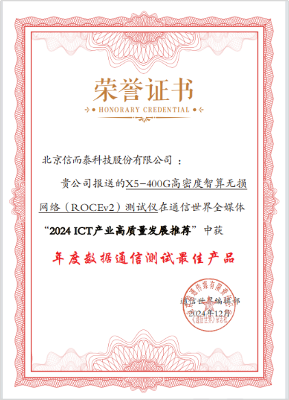 當前,ICT行業正經歷著前所未有的變革與發展。隨著5G技術的廣泛應用、云計算的蓬勃興起以及人工智能與物聯網的深度融合,行業競爭愈發激烈,ICT企業逐鹿行業前沿,或攻堅技術,或打磨產品,或拓展應用,全力探索高質量發展之路。12月18日,2025 ICT行業趨勢年會在北京舉辦。會議期間,通信世界“2024 ICT產業高質量發展推薦”正式發布。“X5-400G高密度智算無損網絡(ROCEv2)測試儀”入選“2024 ICT產業高質量發展推薦”。