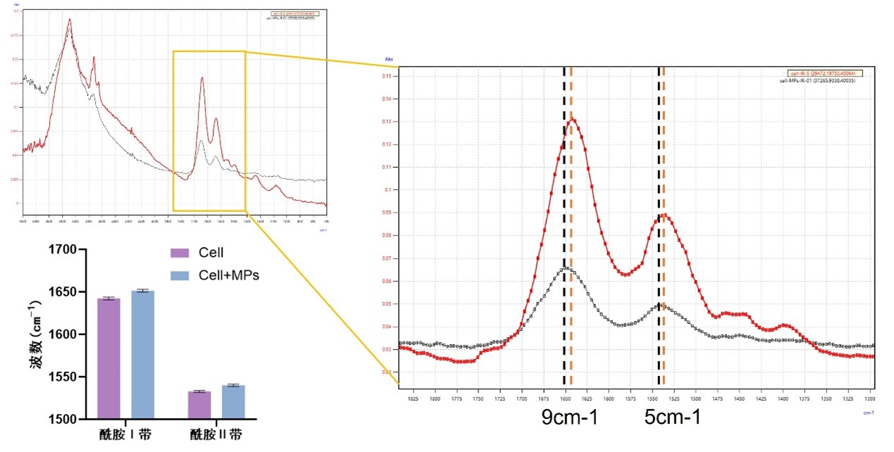 4 單個(gè)巨噬細(xì)胞蛋白與微納塑料的相互作用:酰胺I帶和酰胺II帶發(fā)生波數(shù)位移