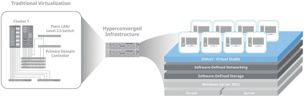 ▲圖1:超融合基礎架構(HCI)是軟件定義平臺的構建塊,結合了傳統和實時工作負載。艾默生的無界自動化愿景就是一種軟件定義的控制技術,該模型旨在通過消除專用控制硬件,使項目更容易執行,更具成本效益,從而實現更靈活、可擴展、面向未來的運營。