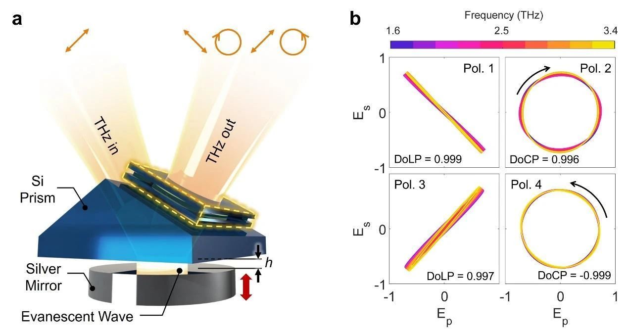 在這項研究中,科研人員新研發(fā)的太赫茲波偏振調(diào)制器,可以靈活控制太赫茲波偏振,輸出任意的偏振態(tài)。“相比已報道的其他太赫茲波偏振調(diào)制器,我們研發(fā)的偏振調(diào)制器在多功能性、大工作帶寬以及高控制精度方面取得顯著突破,可為光譜檢測提供先進的偏振解析能力,能滿足材料物理特性研究、生物制藥品質(zhì)監(jiān)測等應(yīng)用需求,也可作為下一代信息技術(shù)的核心部件,在高速通信中降低傳輸損耗、提高數(shù)據(jù)吞吐量。”陳學(xué)權(quán)說。