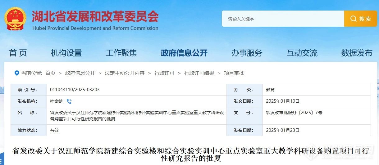 5793萬元!漢江師范學院計劃更新30臺(套)科研