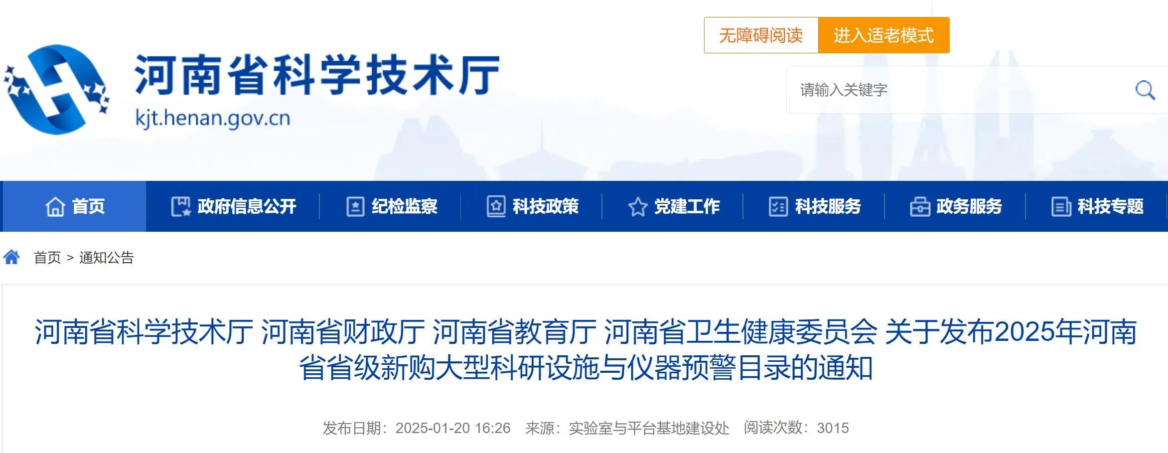 為貫徹落實《國務院關于國家重大科研基礎設施和大型科研儀器向社會開放的意見》(國發(fā)〔2014〕70號)、《河南省人民政府關于促進重大科研基礎設施和大型科研儀器向社會開放的實施意見》(豫政〔2016〕56號)有關要求,從源頭控制大型科研設施與儀器重復購置,提高大型科研設施與儀器利用率和財政資金使用效益。省科技廳、省財政廳、省教育廳、省衛(wèi)生健康委依據2024年我省大型科研設施與儀器資源調查數據,在綜合分析價值50萬元及以上大型科研設施與儀器總量、年平均運行機時、地域分布等多種要素的基礎上,組織專家對全省擁有數量較多但利用率不高的大型科研設施與儀器進行分析論證,編制了《河南省省級新購大型科研設施與儀器預警目錄》(以下簡稱預警目錄,見附件),現予以發(fā)布。