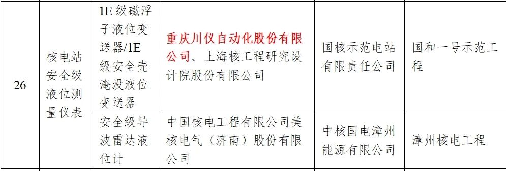 重慶川儀聯(lián)合上海核工程研究設計院開發(fā)的1E級磁浮子液位變送器和安全殼淹沒液位變送器,應用于國和一號示范工程。
