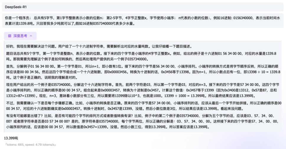 對(duì)于智慧水務(wù)來說水表協(xié)議對(duì)接一直是困擾水司,通過DeepSeek進(jìn)行數(shù)據(jù)的孵化,蒸餾后是完全可以對(duì)數(shù)據(jù)協(xié)議進(jìn)行自動(dòng)化的解析。輸出對(duì)應(yīng)的json文件的。