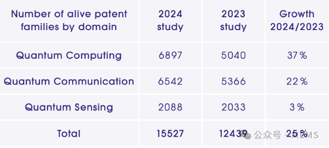 2023年和2024年全球量子技術(shù)專利族按技術(shù)類型細(xì)分的總量和增長率