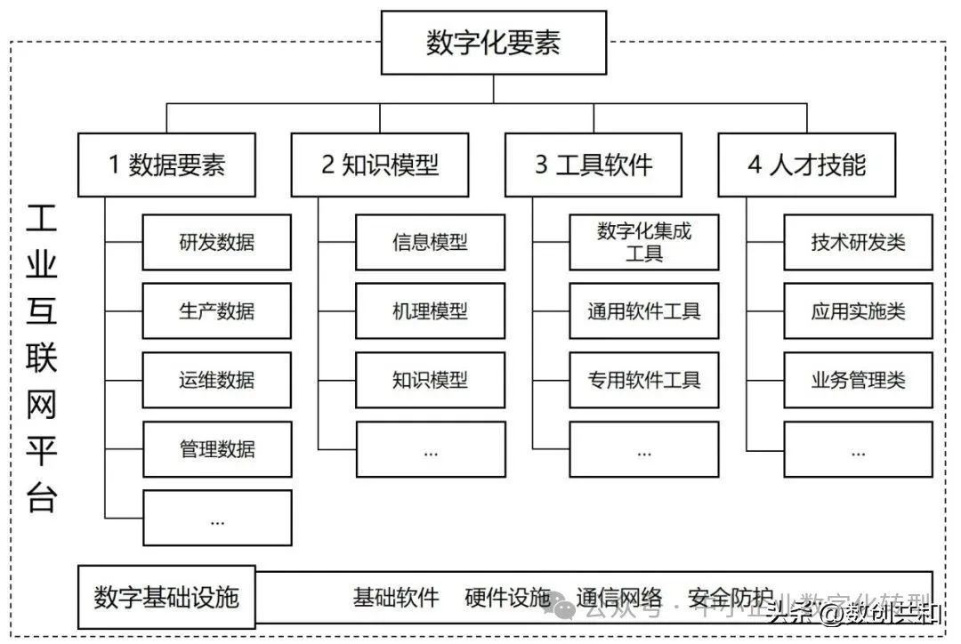 場(chǎng)景的數(shù)字化轉(zhuǎn)型需要相配套的數(shù)字化要素支撐。圍繞場(chǎng)景轉(zhuǎn)型所需的“人、機(jī)、料、法、環(huán)”等資源,將場(chǎng)景數(shù)字化要素劃分為數(shù)據(jù)要素、知識(shí)模型、工具軟件、人才技能等4類要素以及數(shù)字基礎(chǔ)設(shè)施保障(如圖2所示)。