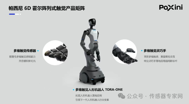 帕西尼核心團隊源自日本早稻田大學(xué)菅野機器人實驗室,率先發(fā)布了全球首款搭載HAPTA異構(gòu)多核陣列軟硬件架構(gòu)(Hetero-ArrayProbing Tactile Architecture)的ITPU多維觸覺處理單元(Intelligent Tactile Processing Unit),以及基于觸覺與視覺多模態(tài)感知模型和前沿Al算法的人形機器人TORA-ONE和觸覺靈巧手DexH系列。帕西尼推出的6D霍爾陣列式觸覺傳感器打破了海外技術(shù)壟斷,成為機器人“感知覺醒”關(guān)鍵技術(shù)的代表之一。