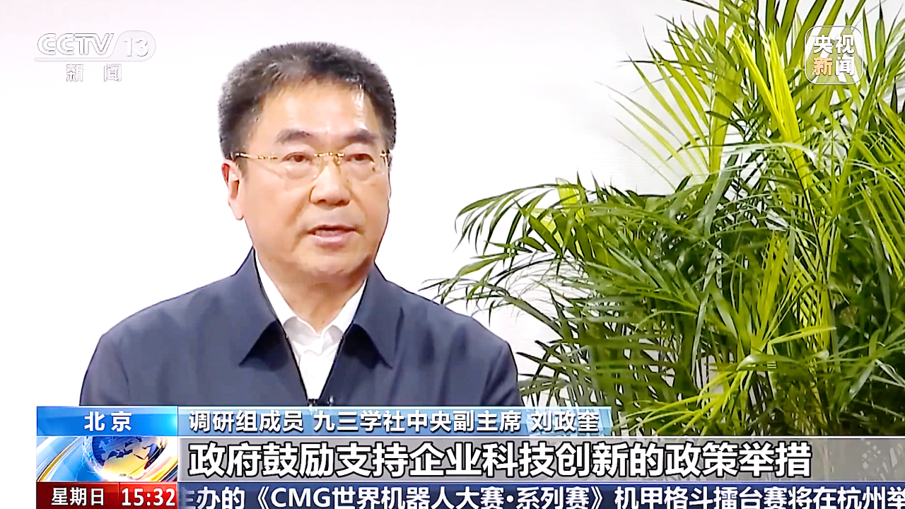 5月26日,央視新聞頻道(CCTV-13)重點報道:受中共中央委托,九三學(xué)社中央圍繞“優(yōu)化企業(yè)創(chuàng)新生態(tài)、加速發(fā)展新質(zhì)生產(chǎn)力”主題赴浙江開展年度重點調(diào)研。